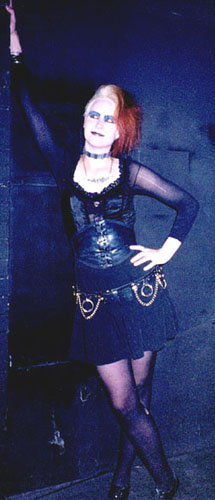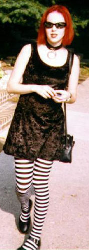 spooky kid: This is a very recent term which doesn't have much widespread usage quite yet. The spooky kids are followers of Marilyn Manson and Nine Inch Nails and are mostly under 18 years old. (Originally the name of the band was Marilyn Manson and the Spooky Kids.) People confuse spooky kids for Goths, which is frustrating to Goths because Goth culture gets blamed for the stupid things spooky kids do. Spooky kids and Goths don't associate with each other very much, and they tend to not like each other. Goths resent them for being poseurs and giving Goth a bad name, and they resent Goths for being snobs and elitists. Spooky kid is usually used as a derogatory term similar to baby bat, but it specifically refers to the younger and ardent Marilyn Manson and Nine Inch Nails fans. I'm not sure if spooky kids call themselves spooky kids, I think most of them call themselves Goth.
